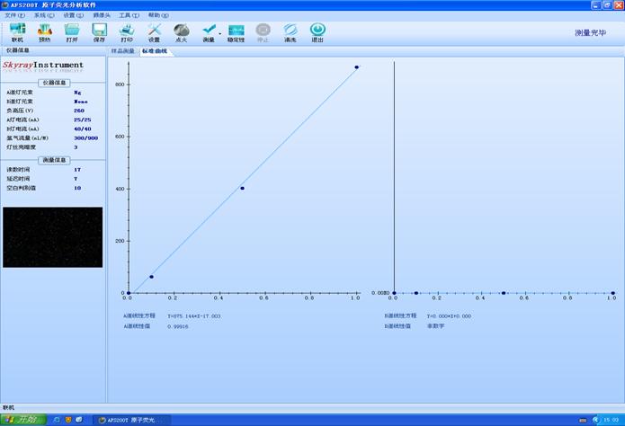 (A道线性方程:Y=875.144*X-17.003);(A道线性值:0.99916)见图1
