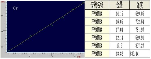 2. 不锈钢中Cr的工作谱图与相关数据