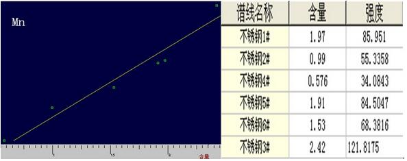 3. 不锈钢中Mn的工作谱图与相关数据