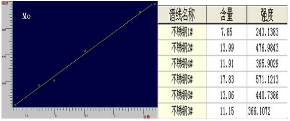 4,不锈钢中Mo的工作谱图与相关数据