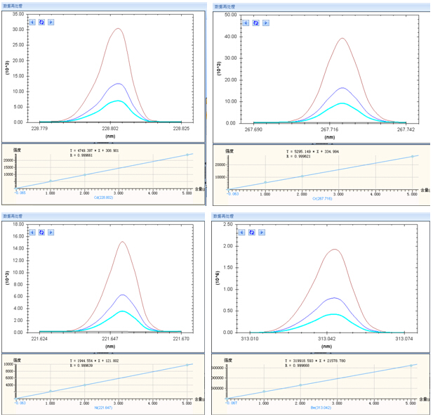 在 ICP-AES正常运行后,将样品溶液通过进样系统引入到电感耦合等离子体中,分析波长测定各元素的光谱强度。