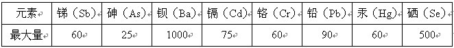按国标中针对涂料中有害元素含量应小于或等于下表中相应元素的最大限量要求。