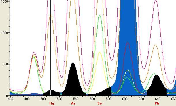 Pb的图谱(虚谱表示不同含量的谱峰)