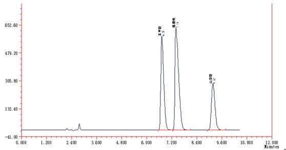 用超纯水分别将3种标准品配置成适宜浓度的苯甲酸,糖精钠、山梨酸的储备液,备用。使用时分别取各储备液适量,用甲醇稀释成混合标液,待测。