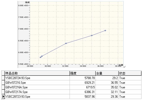 以下使用EDX 3600B型对白云石国标样GBW07216A实际测试的所得的谱图,工作曲线等相关数据: