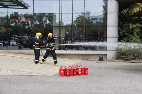 本次演练分为两部分进行,一是逃生演练,二是进行灭火演练。