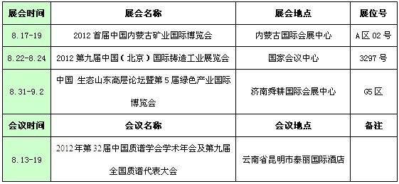 太阳成tyc7111cc2012年8月份展会、会议预告