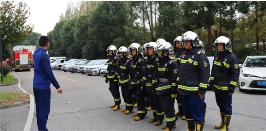 本次消防演习与昆山高新区消防中队联动,消防车和消防员也抵达了公司现场,进行消防安全指导检查。