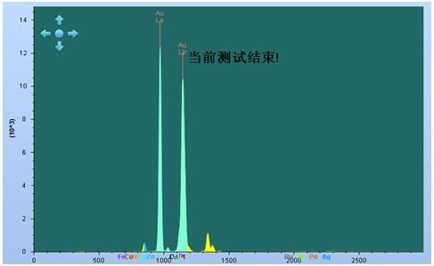 选取某公司生产黄金首饰,使用EDX 3000PLUS仪器,对其进行测试。如下图2所示,为仪器测试点,可将样品需测试点移动到十字光标中心进行测试。