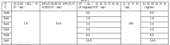 使用砷(As)标准使用溶液(0.1ug/ml),优级纯盐酸(HCL) ,分析纯硫脲和抗坏血酸,去离子水(电阻率≥10M 欧姆)等试剂。