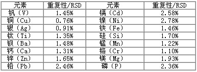 仪器自动点火后按照仪器工作条件设置好参数后,稀释剂直接通过雾化器吸入雾室,进入等离子体,待仪器稳定后依次测量空白溶液、标准溶液及已稀释处理的样品溶液,仪器根据工作曲线可直接得出最终样品中各元素的含量。