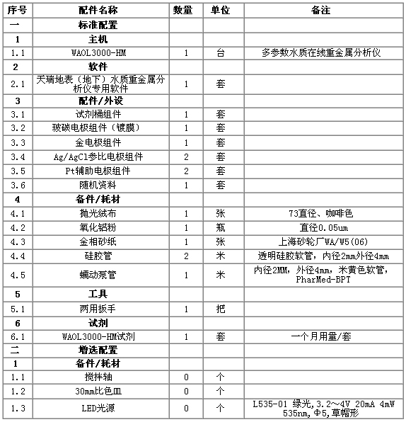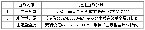 综上所述,有色金属矿业对环境的重金属污染包括了大气、水体和土壤三个方面。因此,为了全面监测有色金属矿业环境重金属监测系统包括:大气、水体和土壤三个部分,选用监测仪器如下表: