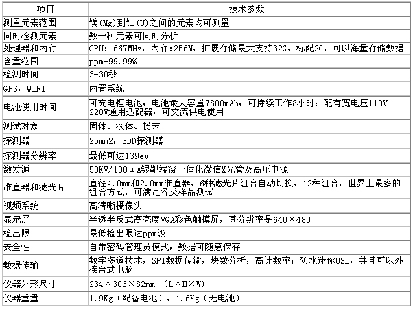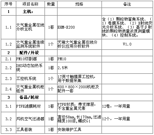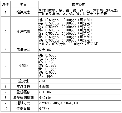 以下列出了大气重金属在线分析仪的一些重要技术参数(表1)。