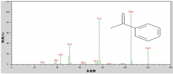 y,在有机化工领域应用非常广泛。我国每年的EVA市场需求量不断增加,尤其在制鞋工业,主要应用于中高档旅游鞋、登山鞋、拖鞋、凉鞋的鞋底和内饰材料中。在EVA材料交联过程中高温会释放出苯乙酮和2-苯基-2-丙醇。苯乙酮是一种简单芳香酮,具有催眠的功能。根据欧盟67/548/EEC危险物质的分类、包装、标识指令的相关规定,苯乙酮被定为有毒有害物质,如不慎被儿童吞咽,不但对身体有害,而且会刺激眼睛,所以禁止用于玩具等儿童用品。2-苯基-2-丙醇可能对使用者皮肤、呼吸道、黏膜和中枢神经产生不利影响。出口的EVA儿童拖鞋曾多次因苯乙酮或2-苯基-2-丙醇超标,被出口国海关扣押并没收,造成严重的损失,国内企业对于苯乙酮和2-苯基-2-丙醇含量的检测高度重视,因此,建立相关的检测方法十分必要。气相色谱质谱联用仪(GCMS)对未知化合物筛选有巨大优势,可用于有毒有害物质定性定量分析。通过气相色谱分离,采用电子轰击电离源(EI)全扫描模式,可以完成化合物的筛查, 配合SIM模式可以完成准确的定量分析。