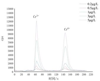 用1 mg/L Cr3+和Cr6+混合标准溶液依次稀释配制浓度分别为0.2 µg/L、0.5 µg/L、1.0 µg/L、3 µg/L、5