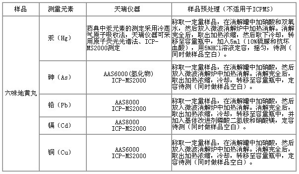太阳成tyc7111cc参考《中华人民共和国药典》,采用原子吸收光谱仪(AAS6000;AAS8000)、原子荧光光谱仪(AFS200系列)、电感耦合等离子体质谱仪(ICP-MS2000),对六味地黄丸中镉、铅、铜、砷、砷、汞等重金属的测定进行研究,测试结果准确度高,重复性好。