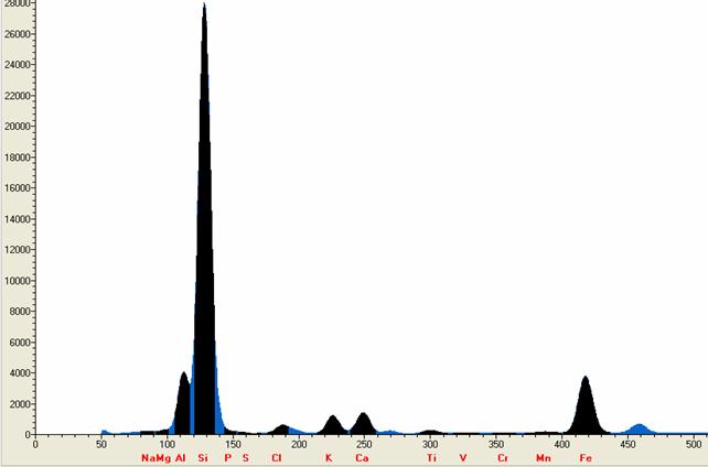 以下使用EDX 3600B型对铁矿国标样GSR-5实际测试的所得的谱图,工作曲线等相关数据: