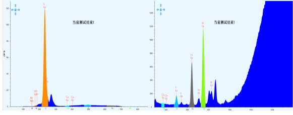 图3为测试中使用的一个未知样(命名石油焦1#)的测试谱图,在谱图中可以明显观察到S、V、Fe、Ni元素的特征峰,并且在此样品中还含有微量的Al、Si、Ca、Zn元素。使用该样品进行重复性测试后,检测结果中S、V、Fe、Ni元素的重复性分别达到了0.28%、3.33%、1.10%和0.71%,表明该仪器对石油焦样品具有很好的检测效果。