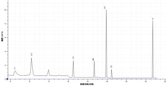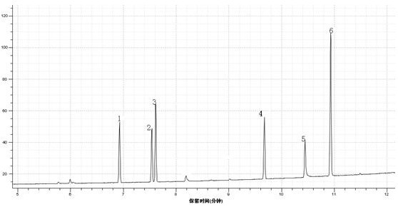 6.2 6种含氯苯酚标准混合溶液总离子流监测图(TIC):