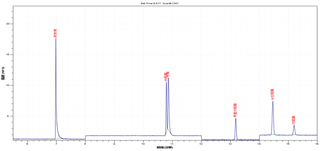 色谱柱:DB-5MS(30m*0.25mm*0.25um),柱流量:1.0mL/min
